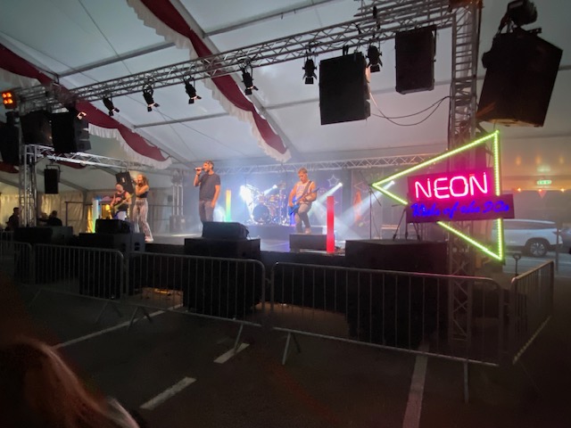 Die Musikgruppe "Neon" begeistert mit Hits aus den 90er Jahren - die Musikpause wird durch ein Quiz überbrückt