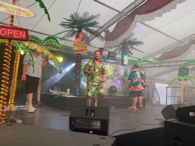 - Im Festzelt wieder eine Superstimmung, diesmal mit einem Auftritt derExtraklasse mit "DJ - Party Bamboleo 07" mit ihrer Show.Partyschlager, Charts und alles was auf einer Beachparty nicht fehlen darf.